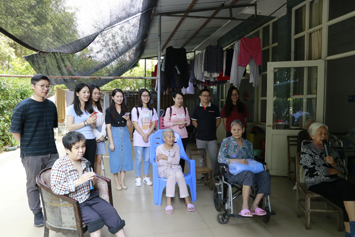 志愿者們圍坐在老人旁邊,詢問他們的生活情況、身體情況,叮囑他們注意保暖、保重身體,傾聽他們的人生故事和叮嚀告誡,并為給他們唱紅歌、讀故事、講新聞,豐富他們的精神生活。老人們對(duì)志愿者的到來感到十分高興,和志愿者一起合唱《團(tuán)結(jié)就是力量》、《歌唱祖國(guó)》、《沒有共產(chǎn)黨就沒有新中國(guó)》等歌曲。護(hù)老院處處洋溢著歡樂的氣氛,老人們的臉上洋溢著幸福。